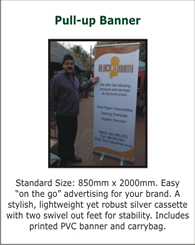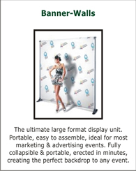 We offer the complete solution for all your banner requirements including PVC, textile and recyclable banners and an array of banner systems each offering an effective, eye-catching and economical display solution. We use Large format digital printing to create full colour exhibition vinyl banners and outdoor advertising banners that are sure to make your event or promotion a success. |