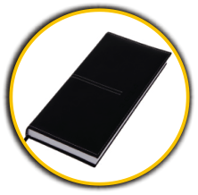 EXECUTIVE SLIMLINE DIARY![]() Sizes: 16 (l) x 8 (w) - closed Colours: Black Material: Leather skin Info: Week-to-View Additional: Satin bookmark Branding: Foiling/Silkscreen/ Embossing (optional) |
